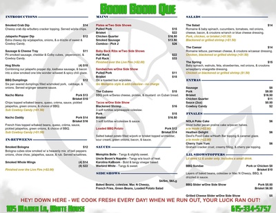 View the menu on the Boom Boom Que Website or in the image below.